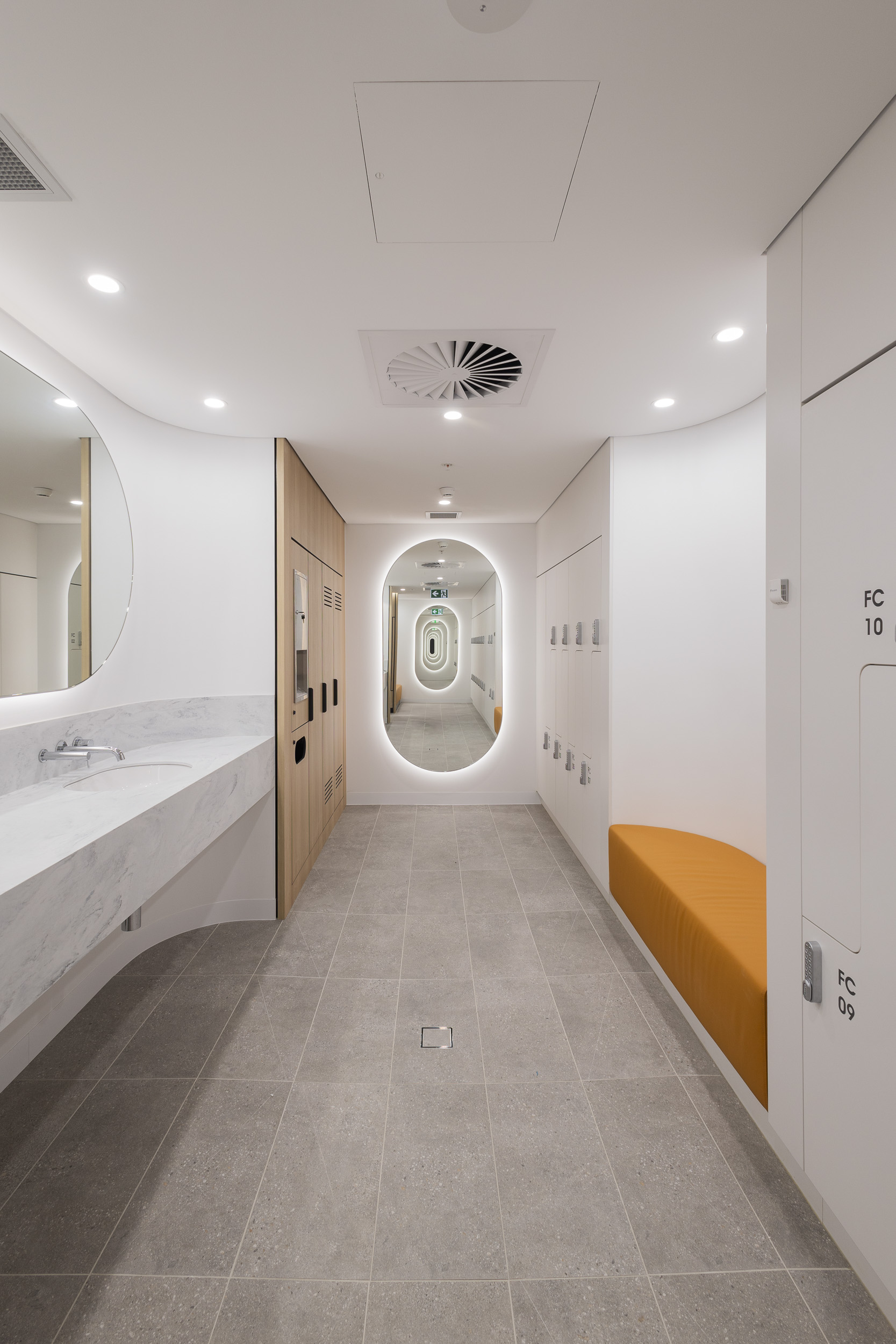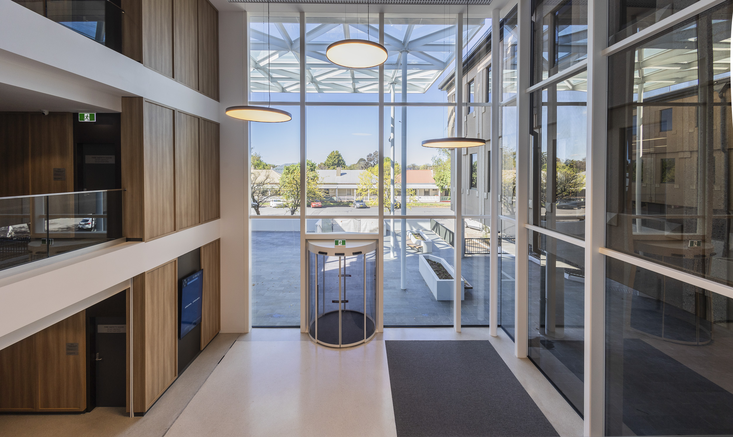 The scope included substantial upgrades to two primary ground-floor entrances — the Bathurst Forecourt and the Main Kite Street Entrance, alongside the construction of a new 11-metre-high glazed atrium. Additional works included new ground-floor amenities, a modern End-of-Trip facility with bike storage, and extensive building services upgrades. All works were delivered within a fully occupied, operational building, requiring careful staging, robust safety controls, and close coordination with occupants.