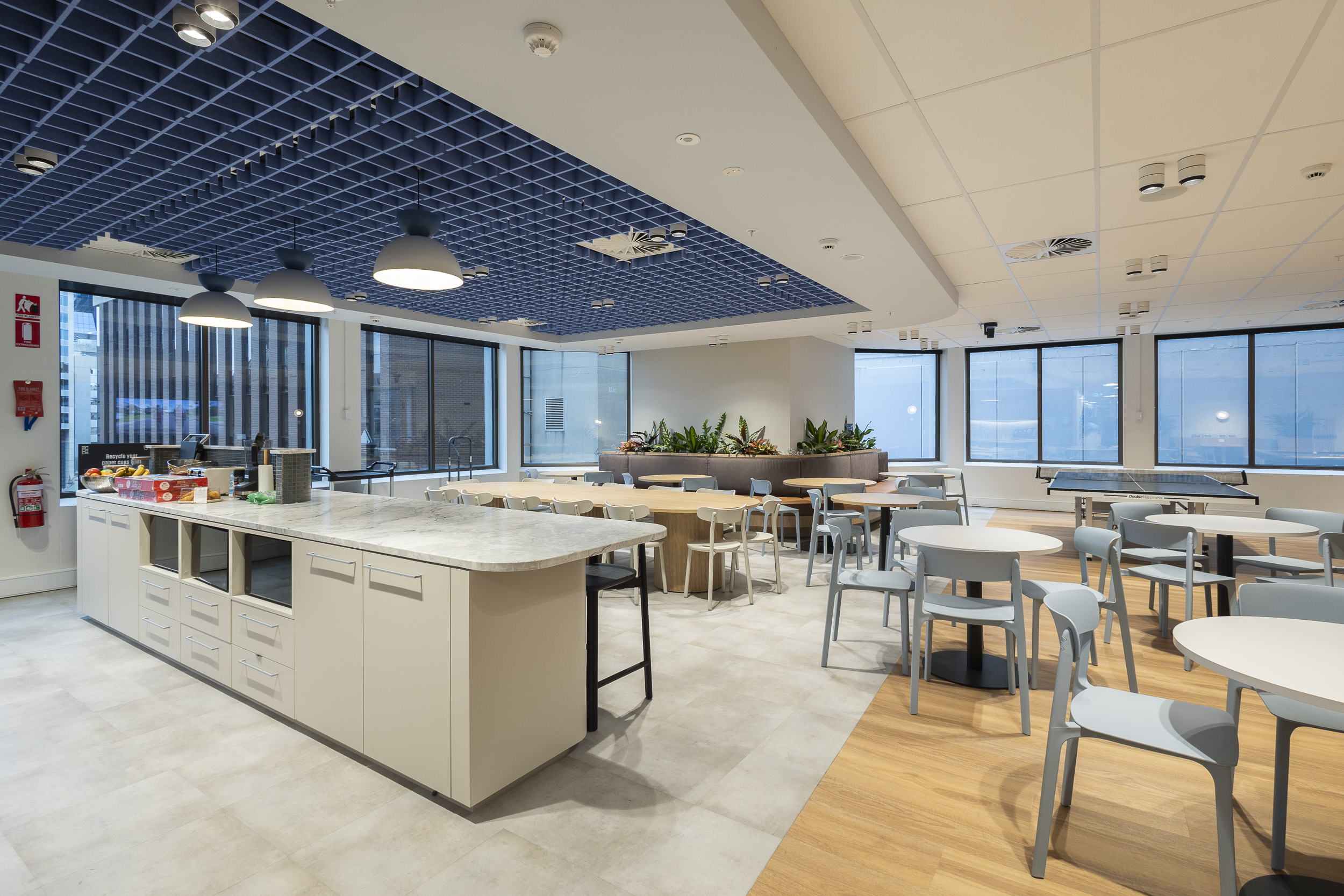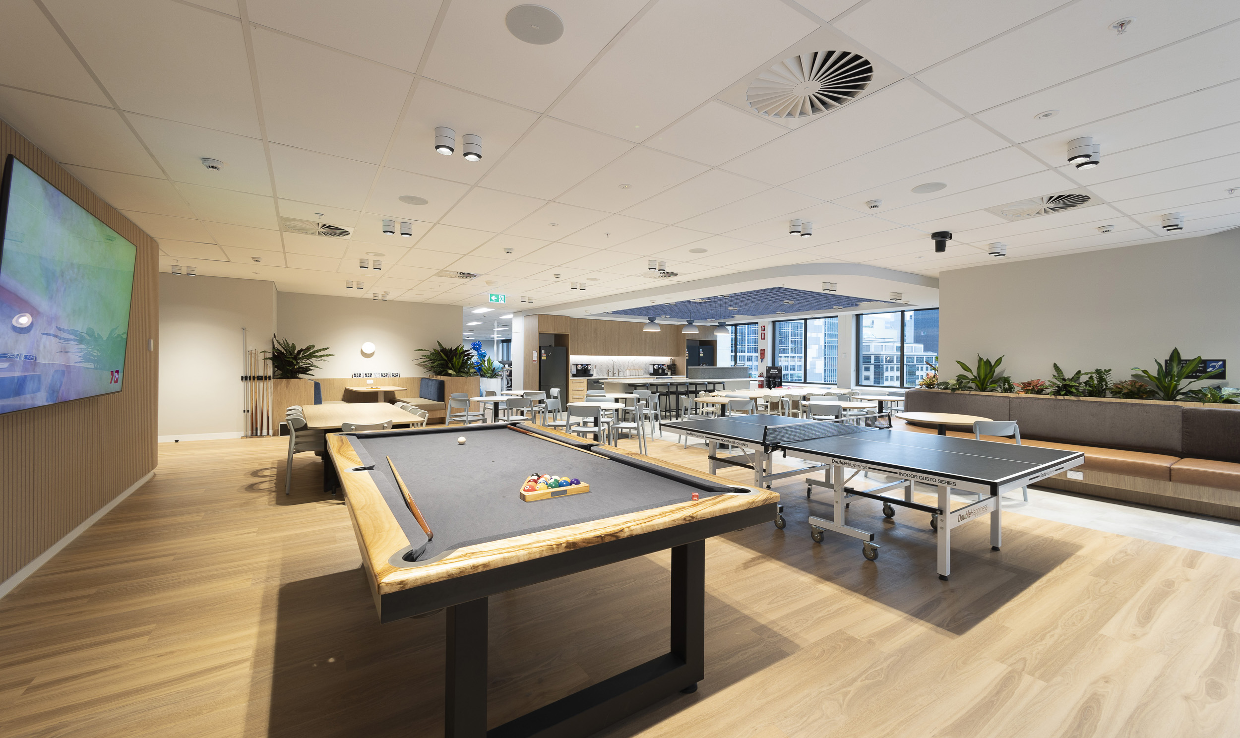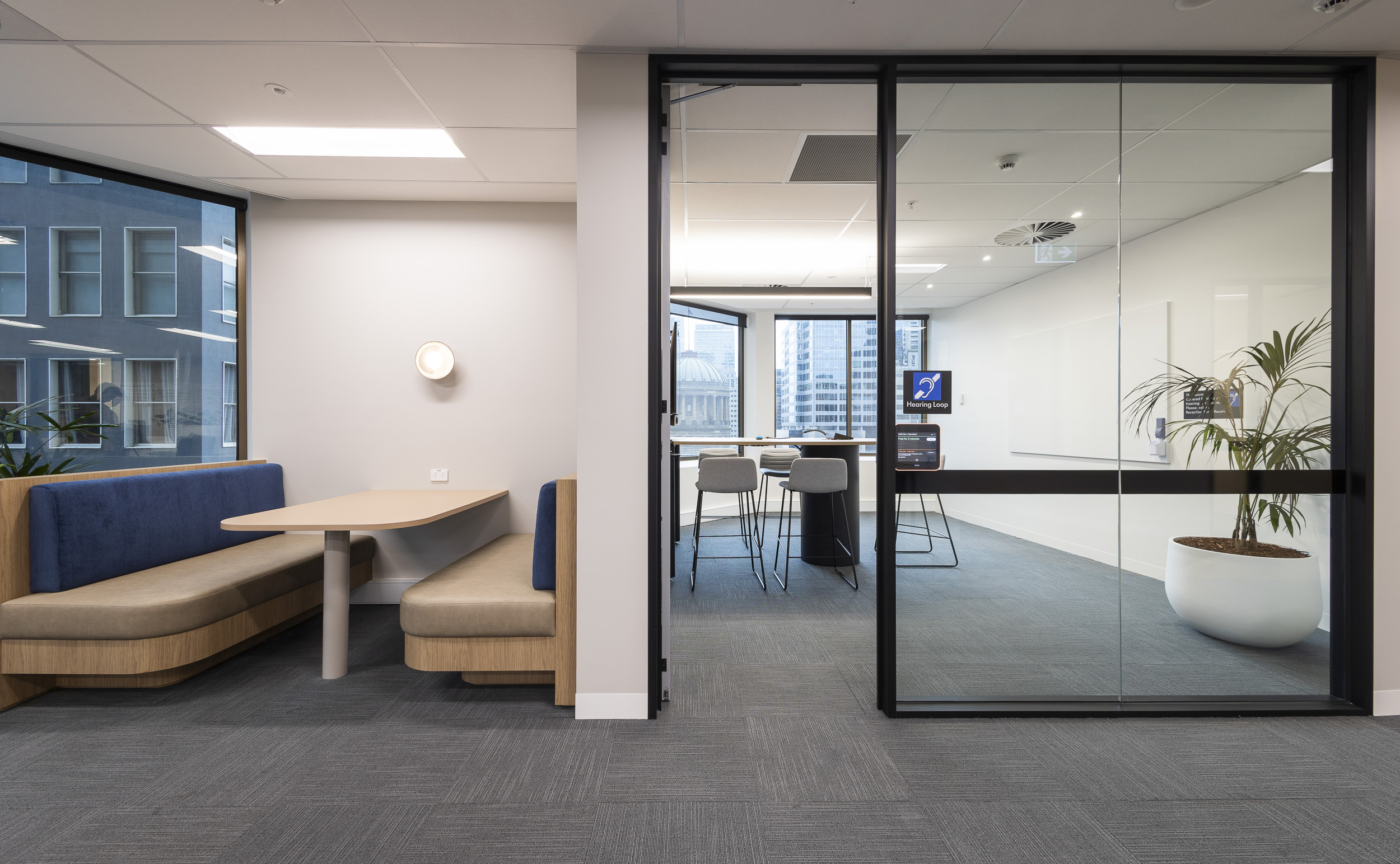The fitout incorporated enhanced acoustic treatments to promote focused and collaborative work zones, alongside architecturally distinctive curved partition walls that added both complexity and visual interest to the build.